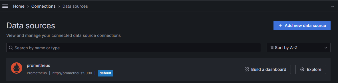 Home > Connections > Data sourceses > Add new data source 로 이동하여 prometheus 를 검색하고, 구성된 프로메테우스 접속 정보를 입력합니다.
