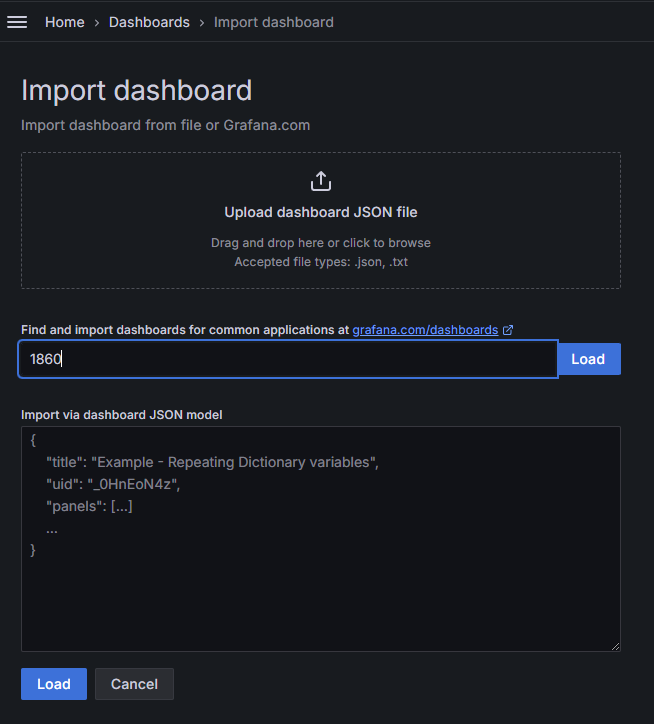대시보드 ID 는 1860 입니다.