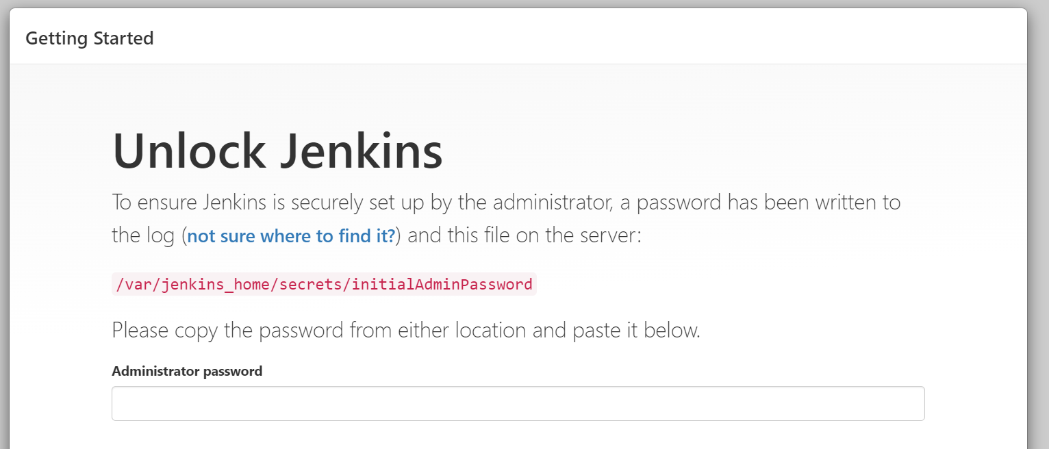 출력된 비밀번호를 복사한 후, 브라우저를 열어 Jenkins 서비스 페이지에 접속한다.