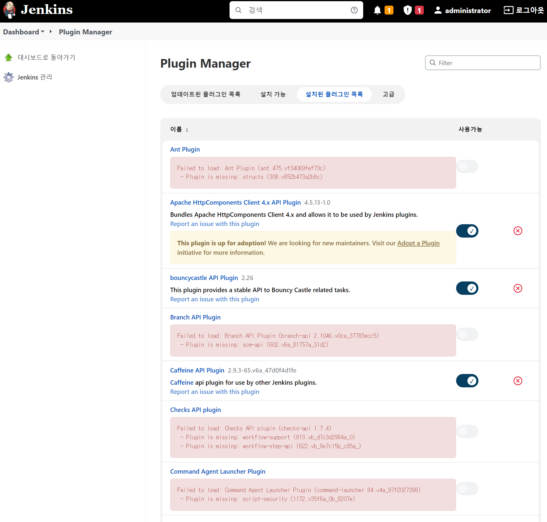 이후 한동안 jenknis 가 플러그인을 설치하게 된다.