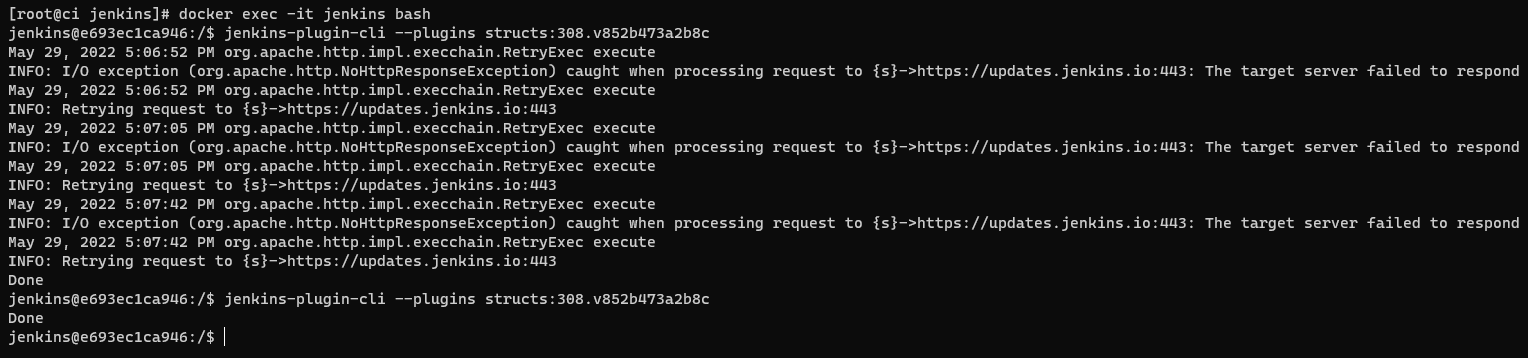 Jenkins 컨테이너 쉘에서 직접 CLI 로 설치를 진행해보면 원인 파악에 도움이 된다.