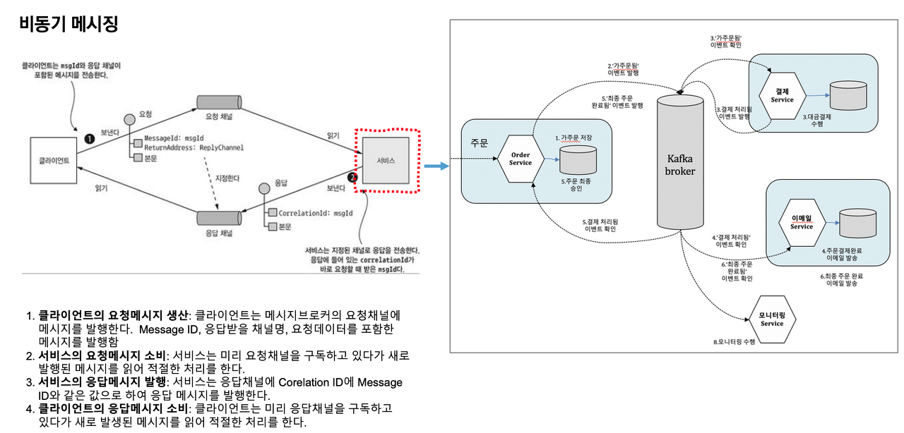 아래 글과 크리스리처드슨의 '마이크로서비스 패턴'을 참고했습니다. 비동기메시징시스템 이해: https://victorydntmd.tistory.com/343 kafka vs RabbitMQ 비교: https://coding-nyan.tistory.com/129 메시지 처리..