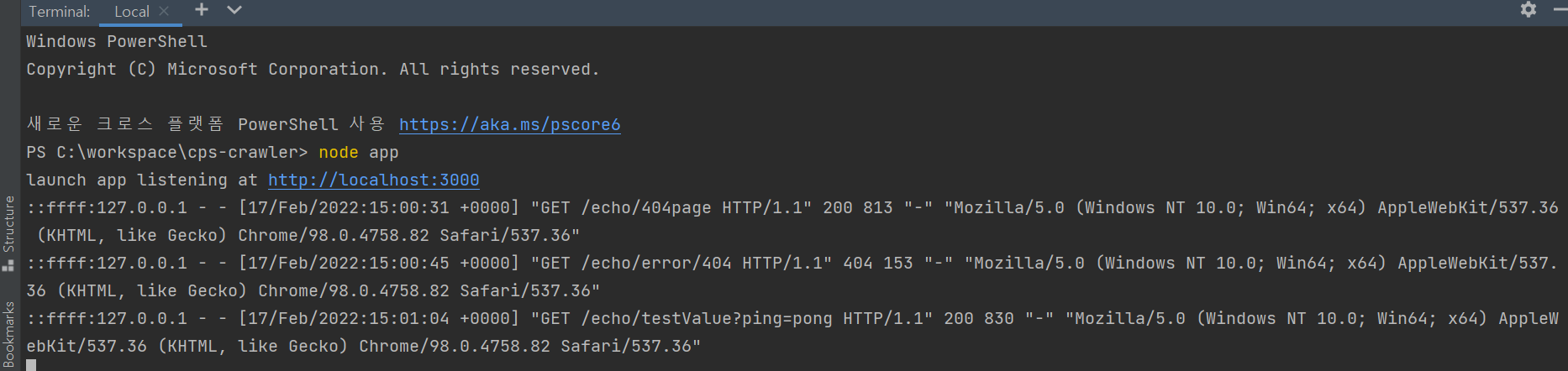 nodejs 기반으로 expressjs 모듈을 사용하여 간단한 http echo 서버를 구현해 보았다.