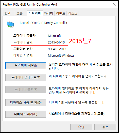 무려 2015년 드라이버라니.. 하드웨어보다 오래된 소프트웨어를 사용하고 있었던 것입니다.