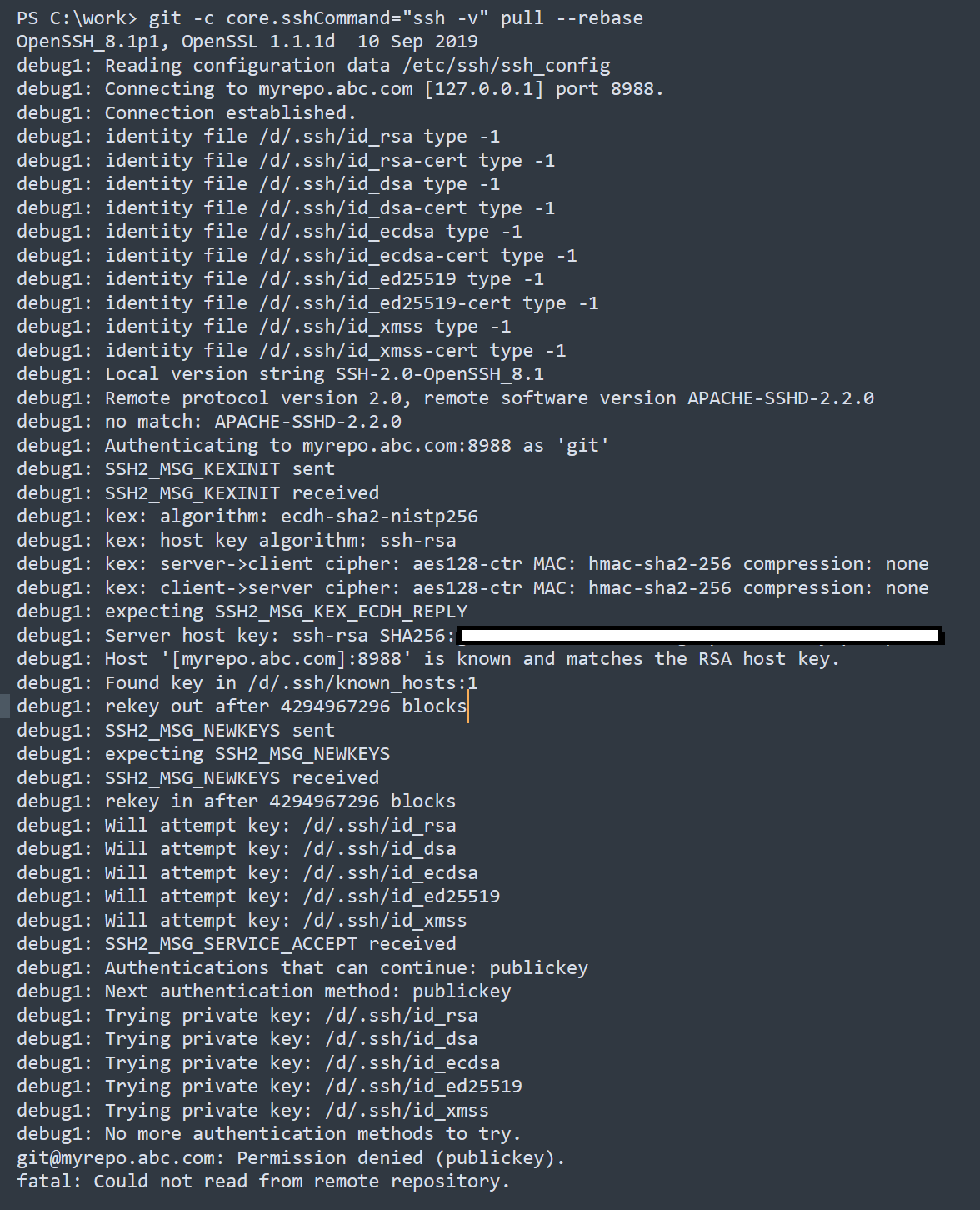 다음과 같은 명령어를 활용하여 git 이 실행되는 동안 참조하는 sshkey 저장소 위치를 확인한다.